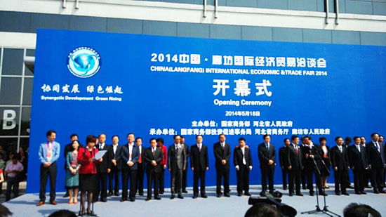 2014中國•廊坊國際經(jīng)濟(jì)貿(mào)易洽談會于5月18日在河北廊坊啟幕。本屆洽談會以“協(xié)同發(fā)展、綠色崛起”為主題,抓住京津冀協(xié)同發(fā)展和環(huán)渤海加速發(fā)展的歷史性機(jī)遇,緊緊圍繞提升改造傳統(tǒng)優(yōu)勢產(chǎn)業(yè)、加快培育戰(zhàn)略性新興產(chǎn)業(yè)、大力拓展現(xiàn)代服務(wù)業(yè),突出在節(jié)能環(huán)保產(chǎn)業(yè)技術(shù)、裝備、產(chǎn)品和服務(wù)等方面的合作,注重產(chǎn)業(yè)對接、企業(yè)對接、項(xiàng)目對接和產(chǎn)銷銜接,著力打造更加區(qū)域化、更具品牌化、更趨國際化、更重市場化,具有較強(qiáng)吸引力、較大影響力的國際投資貿(mào)易促進(jìn)平臺。