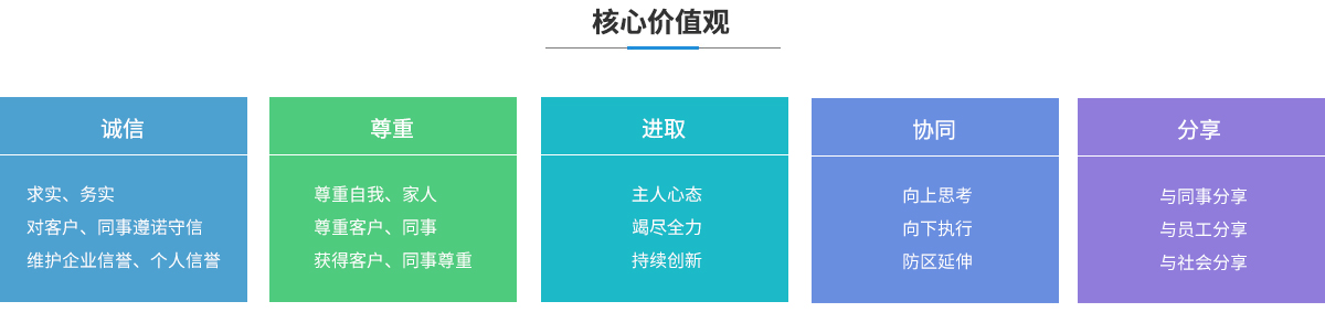 誠信:求實、務實,對客戶、同事遵諾守信,維護企業信譽、個人信譽